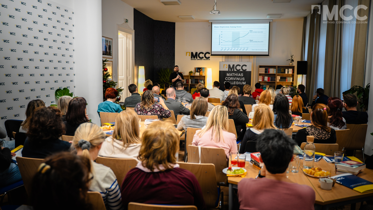 Pedagóguskonferenciánkon Pöltl Ákos "Osztályfőnököm az okostelefon" címmel tartott előadása nagy számú pedagógust és szülőt vonzott képviseletünkre, hiszen mindannyiunkat érintő témáról tanulhattunk és gondolkodhattunk együtt gyermekeink, diákjaink és saját egészségünk érdekében.