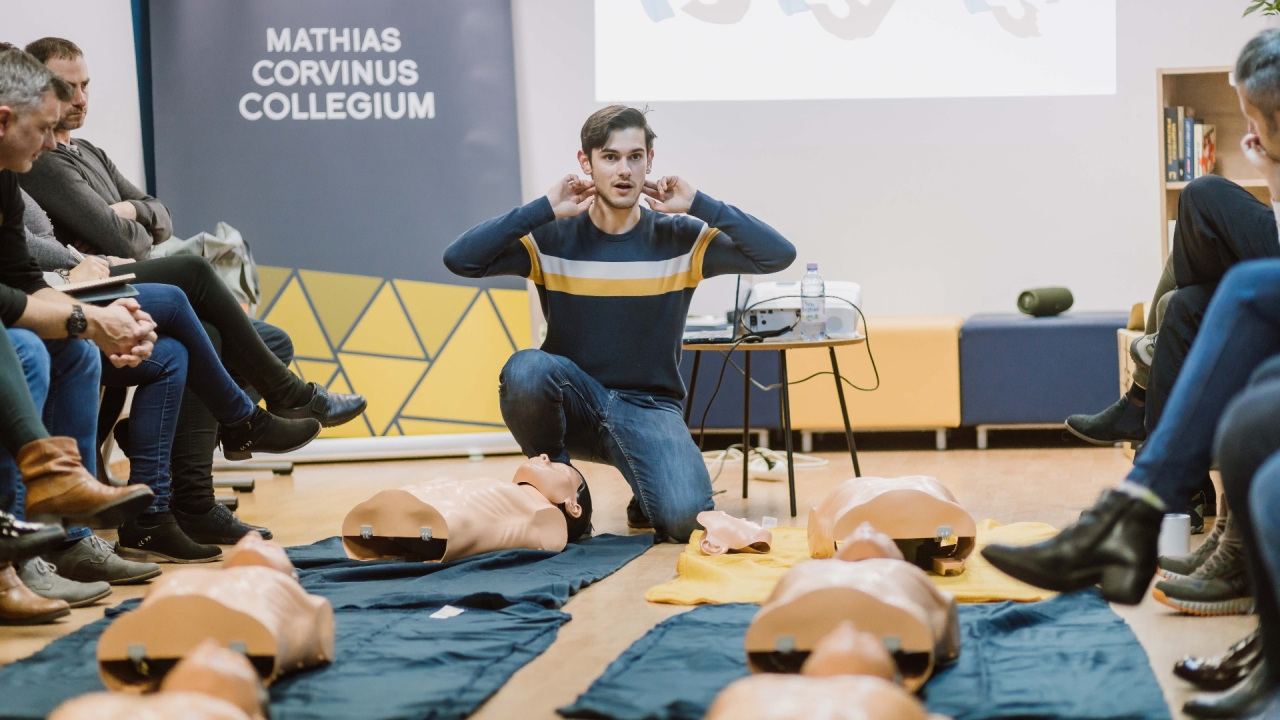 Rendezvényünk három fő mozzanatból tevődött össze: először az újraélesztést elméleti és gyakorlati szemszögből is körüljártuk, szó esett a szívmasszázsról, a mesterséges lélegeztetésről, majd orvosi szituációk, mint pl. légútelzáródás, súlyos allergiás reakció, agyvérzés, szívinfarktus, epilepsziás roham felismeréséről és ezek helyes ellátásáról is. A képzés utolsó részében balesetet (autóbaleset, fulladás, égés, csonttörés) szenvedő áldozatok helyes kezeléséről tanulhattak a résztvevők.