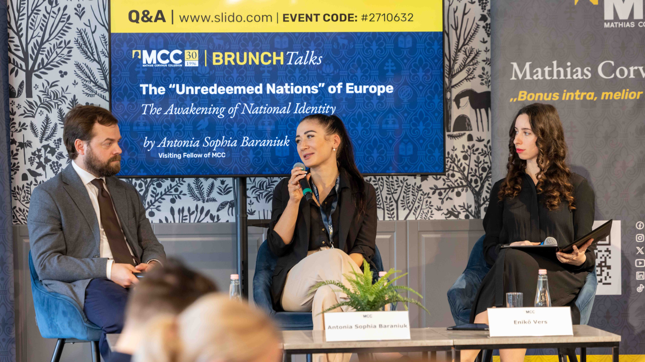 Az MCC Brunch Talks eseményén Antonia Sophia Baraniuk vendégoktató a nemzeti identitás kialakulásának történeti és kulturális folyamatairól beszélt. Kutatásának középpontjában a Habsburg Birodalom úgynevezett „megváltatlan nemzetei” állnak, különös tekintettel a nemzetfogalom 18. és 20. század közötti formálódására.
